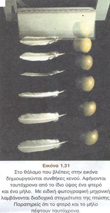 πτώσης δύο αντικειμένων από το ίδιο ύψος. Ζητώ