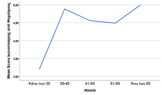 ικανοποίηση από Ψυχιάτρους βάσει της ηλικίας (χ2 = 13.614, p = 0.009), στην