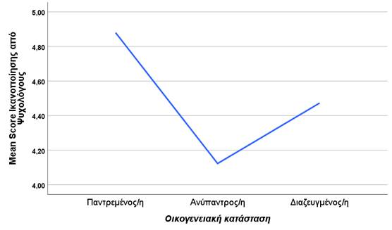 την οικογενειακή κατάσταση (χ2 = 6.426, p = 0.040), και στην ικανοποίηση από