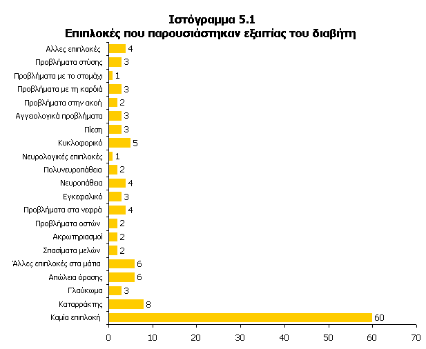 Πίνακας 1 Επιπλοκές που παρουσιάστηκαν στην υγεία των ασθενών εξαιτίας του διαβήτη