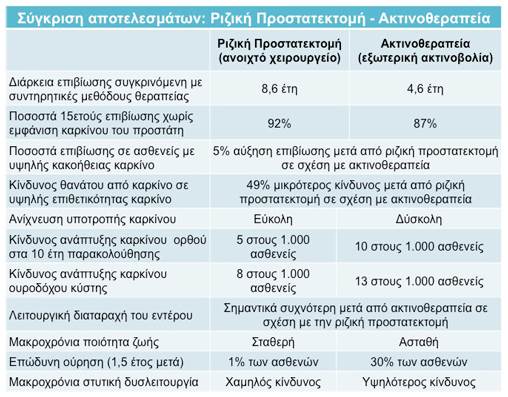 αποτελεσμάτων μεταξύ ριζικής προστατεκτομής και ακτινοθεραπείας