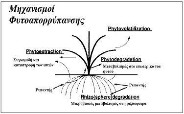 απομάκρυνση των ρυπαντών, με χημική ή μικροβιακή καταστροφή.Στη σταθεροποίηση των ρυπαντών και στην